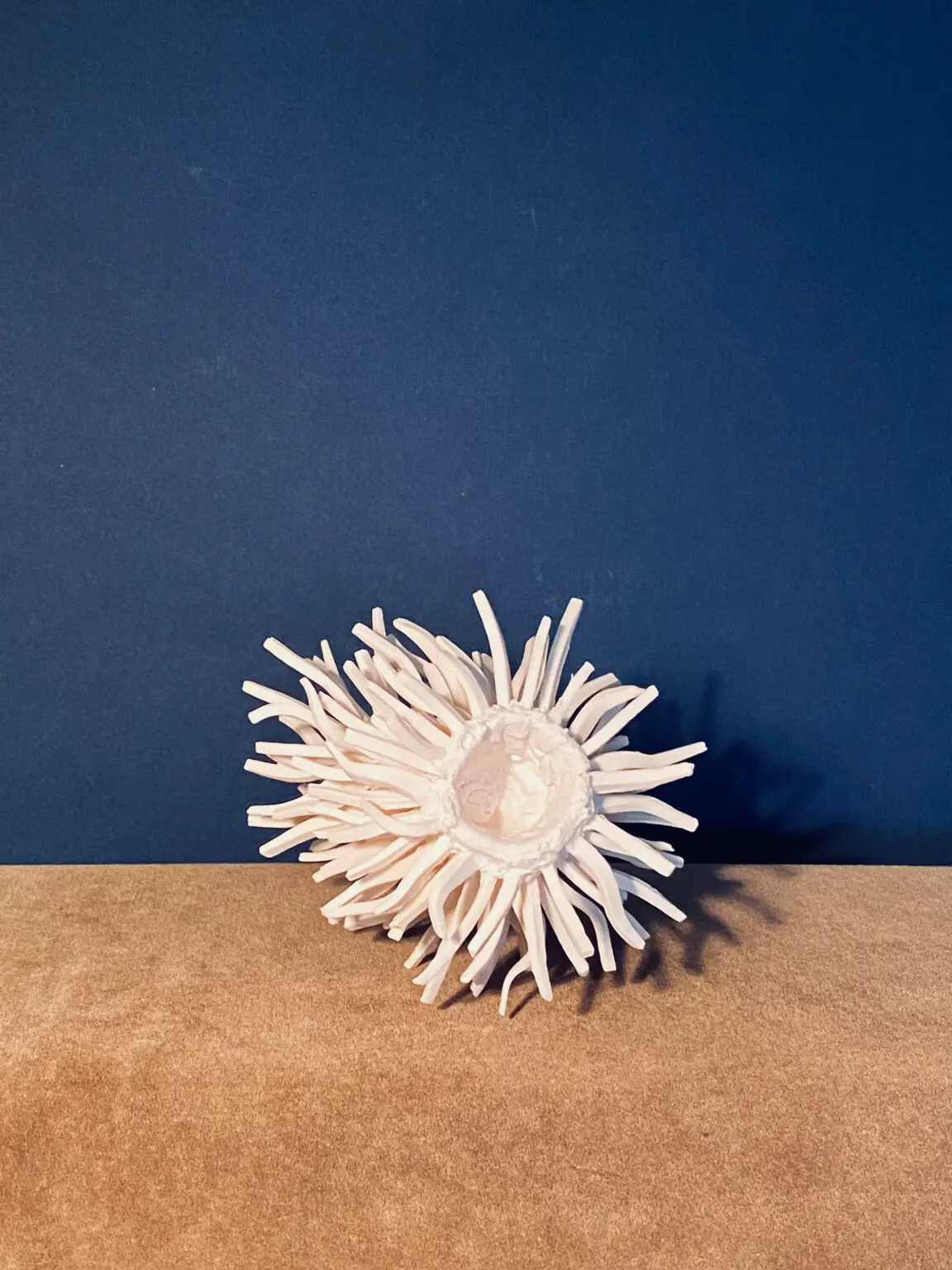 Crafted from the finest natural porcelain, Aurora is a masterclass in artisanal skill. Porcelain, known for its delicate translucency and smooth texture, lends itself perfectly to capturing the ephemeral beauty of the anemone. Every curve and contour of this piece is meticulously shaped by hand, showcasing the unparalleled craftsmanship that goes into its creation. The natural finish enhances the purity of the porcelain, allowing the material’s subtle luster to shine through. This minimalist approach ensures that Aurora remains timeless, making it a versatile addition to both modern and classic interiors. The absence of vibrant colors or heavy embellishments focuses attention on the form and essence of the sculpture, inviting viewers to connect with its deeper meaning.