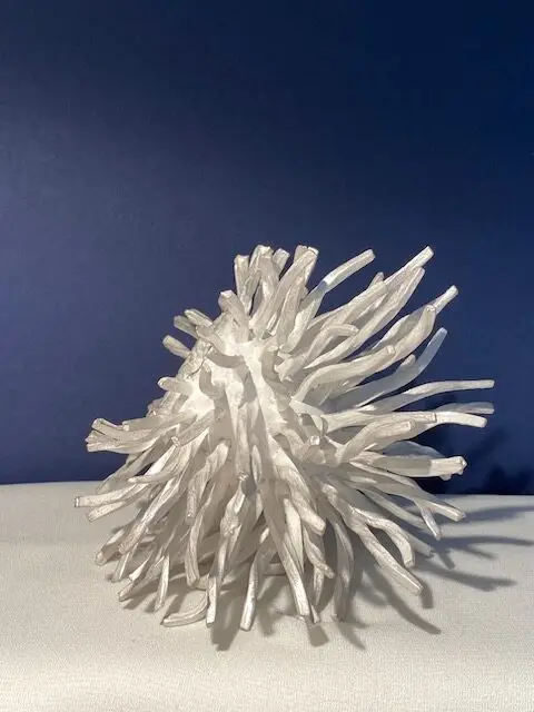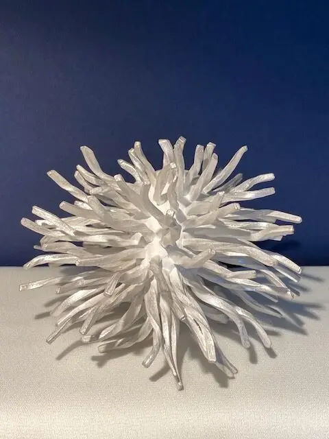 The anemone flower symbolizes fragility, transience, and anticipation. Its soft, flowing petals and bold centers have inspired artists for centuries. This porcelain sculpture captures those forms with modern abstraction, inviting the viewer to see both a flower and a landscape – both nature and dream.